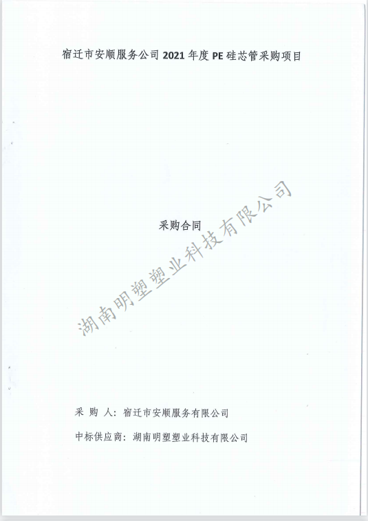 湖南明塑宿遷安順?lè)?wù)公司2021年度PE硅芯管采購(gòu)項(xiàng)目采購(gòu)單位:宿遷市安順?lè)?wù)有限公司